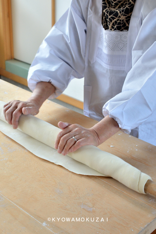 粉から練って作る手打ちのひもかわうどんなので、前の日からの準備は大変です。